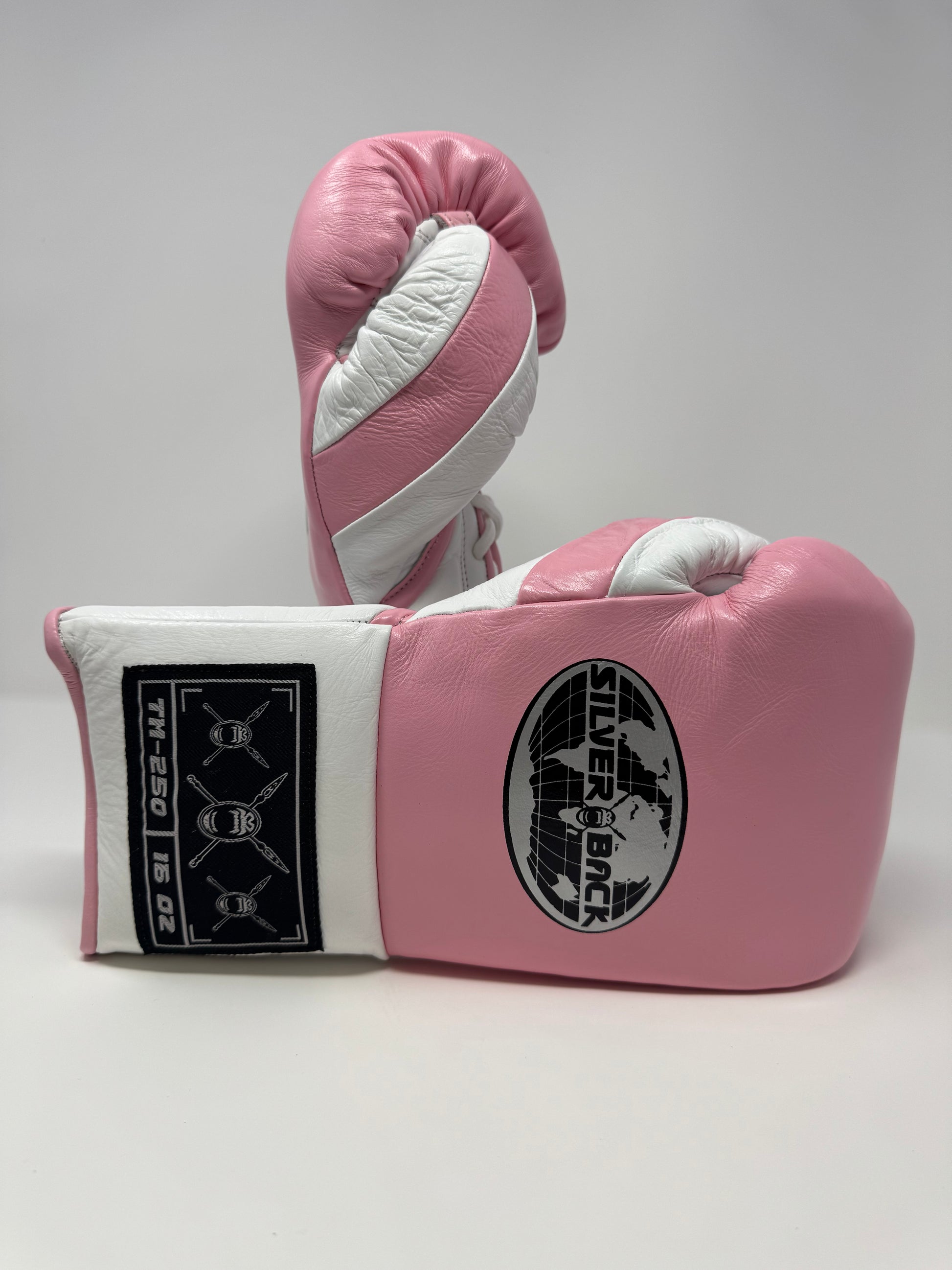 GANTS DE BOXE À LACETS SILVERBACK - TM-250 - BLANC / ROSE - CRIN DE CHEVAL